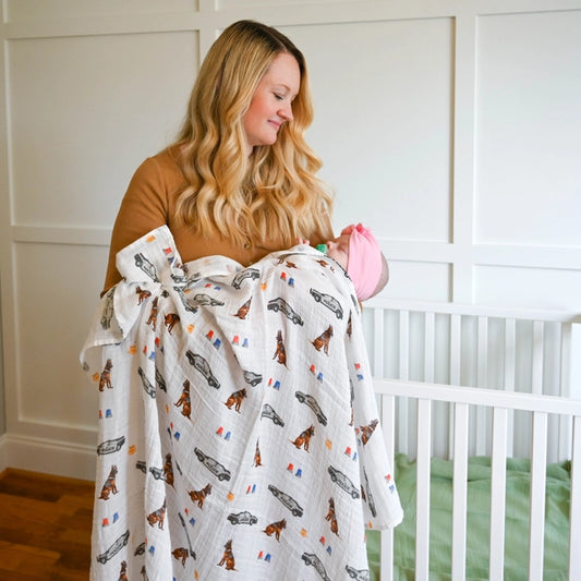 LollyBanks Police Dog Muslin Swaddle Blanket