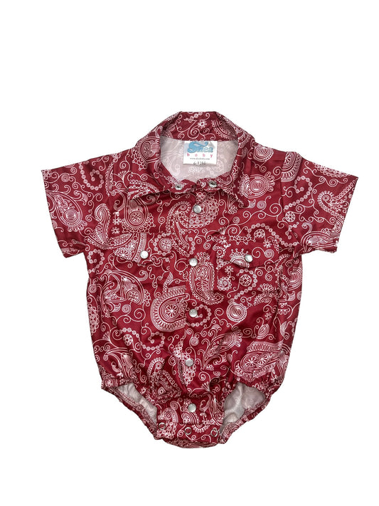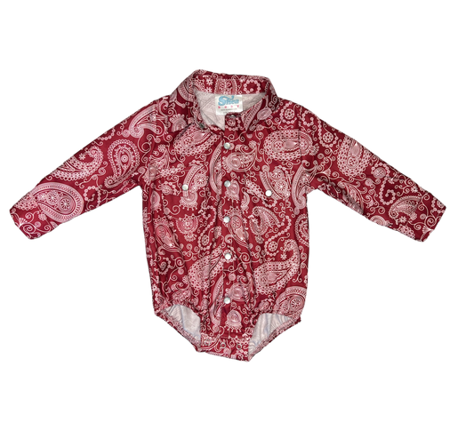 Boys Maroon Paisley Pearl Snap Onesie/Shirt by Shea Baby