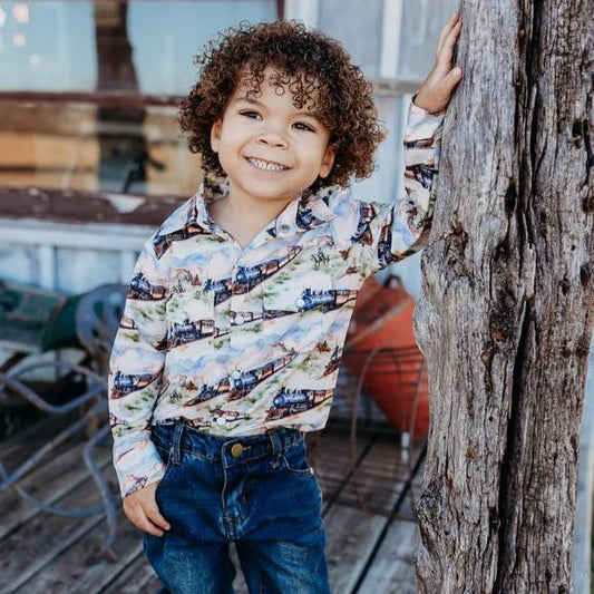 Boys Western Train L/S Pearl Snap Onesie or Shirt by Shea Baby