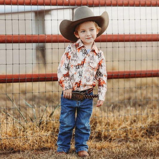 Boys Traveling Cowboy L/S Pearl Snap Onesie or Shirt by Shea Baby