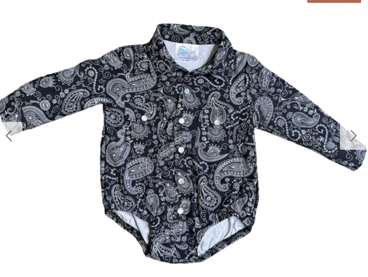 Boys Black Paisley Long Sleeve Pearl Snap by Shea Baby