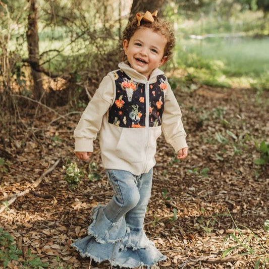 Girls Black Floral Skull Fleece Vest by Shea Baby