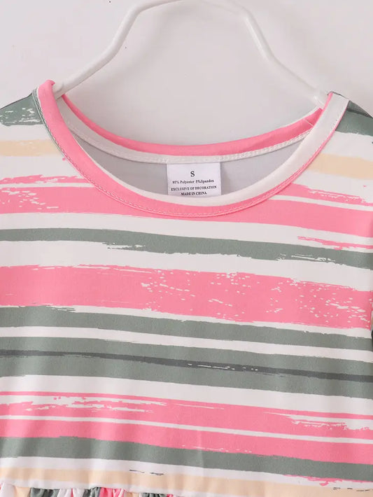 Pink, Yellow, Grey and White Stripe Twirl Dress