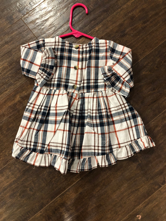 Girls Red Dress with Blue Plaid Double Ruffle Pants by Three Sisters