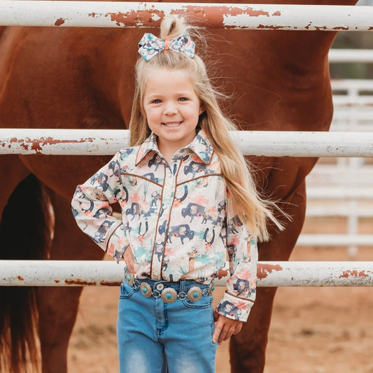 Girls Wild Buffalo Pearl Snap Onesie or Shirt by Shea Baby