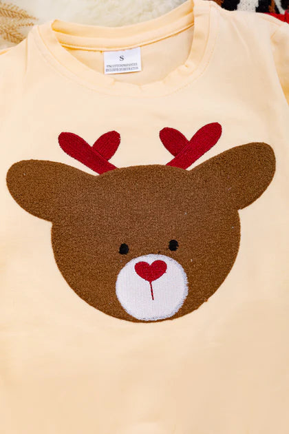 Girls Deer Applique Ivory Cotton Sweatshirt