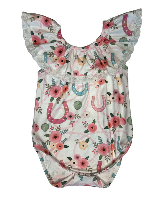Girls Floral Horseshoe Lace Onesie or Shirt by Shea Baby