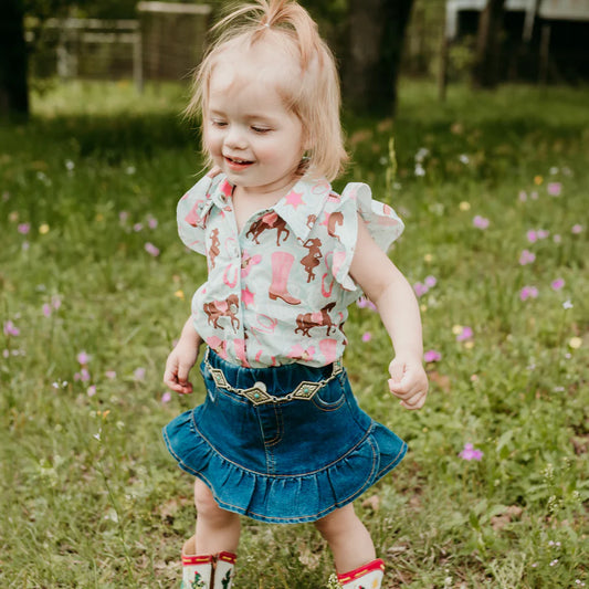 Girls Turquoise Horse Ruffle Snap Onesie or Shirt by Shea Baby