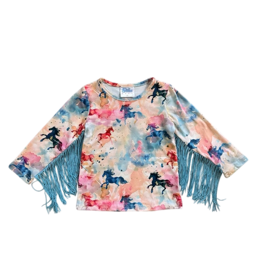 Girls Watercolor Horse L/S Fringe Onesie or Shirt by Shea Baby