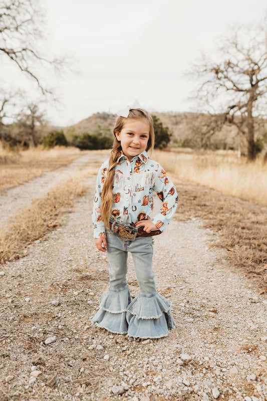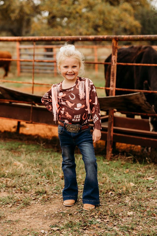 Girls Yeehaw Cowgirl L/S Fringe Onesie or Shirt by Shea Baby