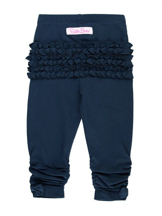 Girls Dark Navy Baby Ruched Bow Leggings by RuffleButts