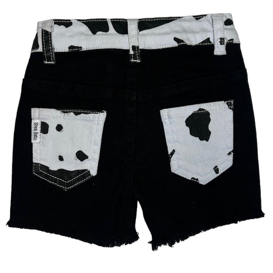 Girls Black Cowprint Fringe Shirt by Shea Baby