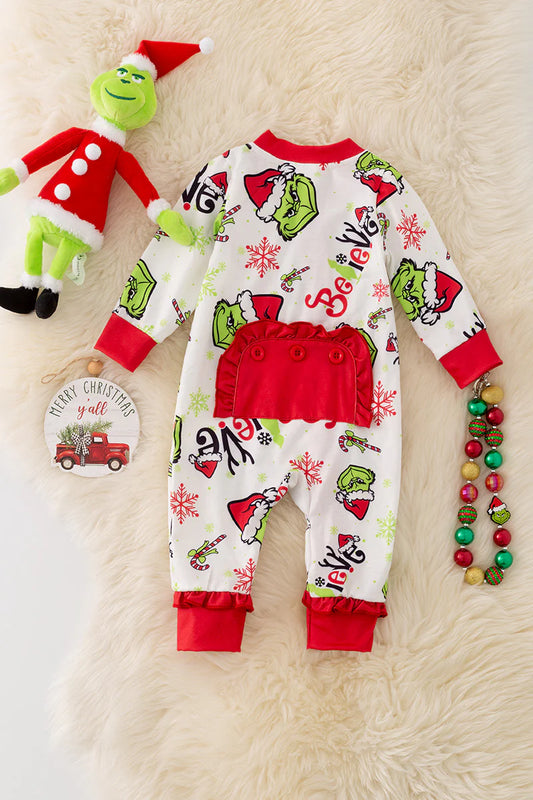 Baby Girls Grinch Christmas Onesie With Ruffle Trim-Blue
