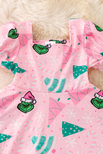 Girls Grinch Dress With Faux Fur Hem