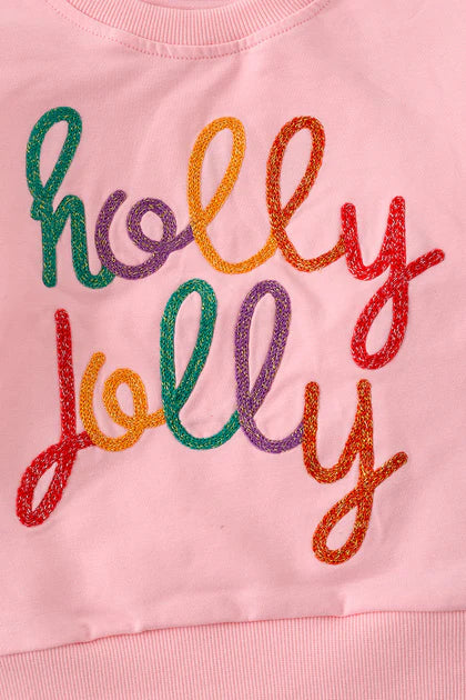 Girls Holly Jolly Embroidered Sweatshirt & Plaid Leggings