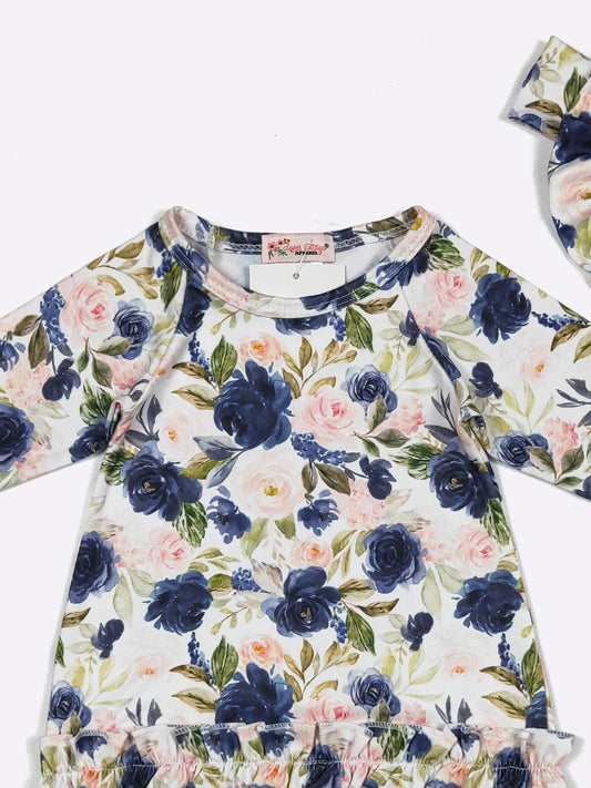 Baby Girls Clover Cottage Navy Blush Rose Baby Gown