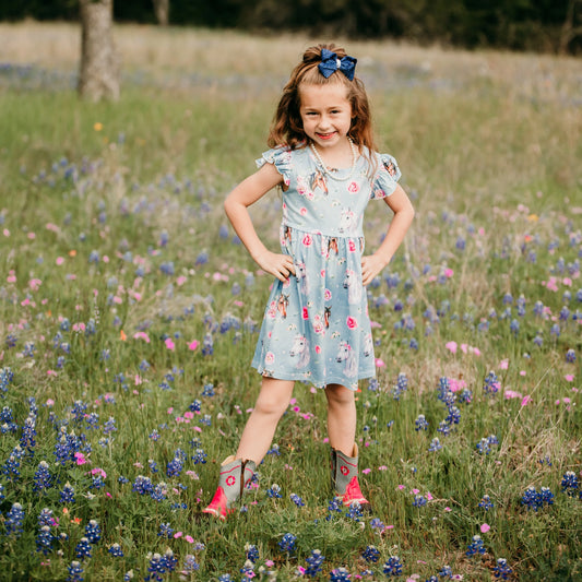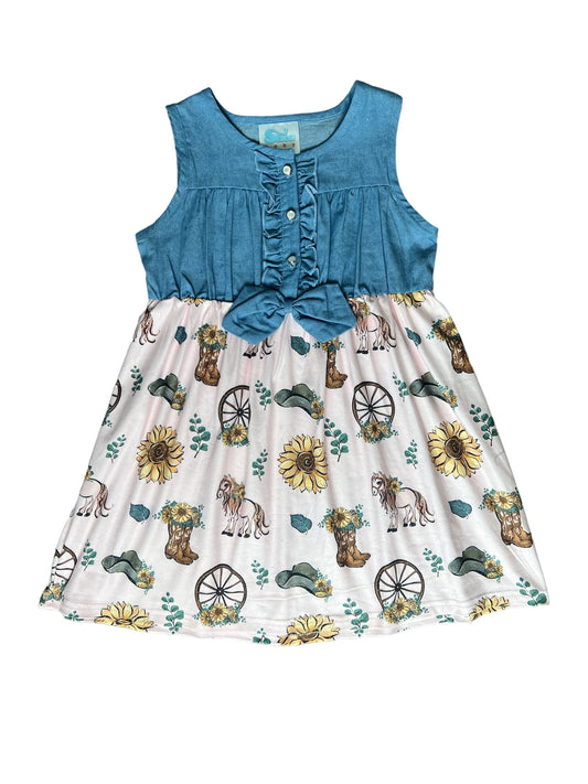 Girls Yeehaw Short Sleeved Pearl Snap Dress by Shea Baby