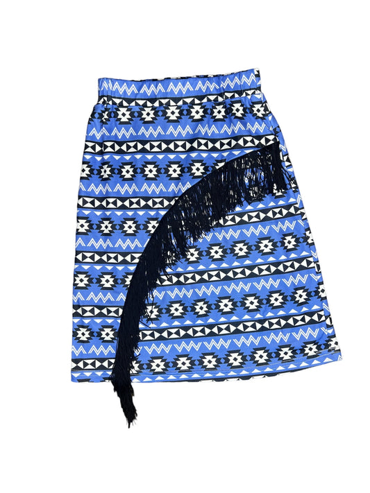 Girls Blue Aztec Long 3/4 Fringe Skirt by Shea Baby