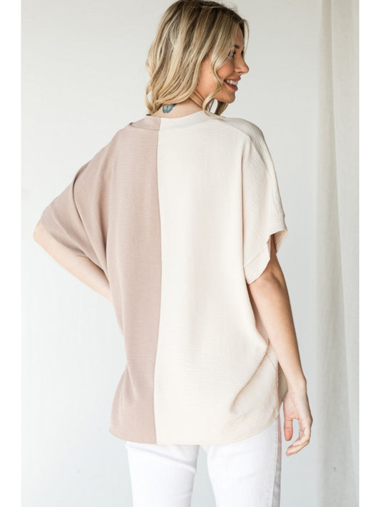 Ladies Solid Duo-Tone Colorblock Boxy Top with V-Neckline by JODIFL