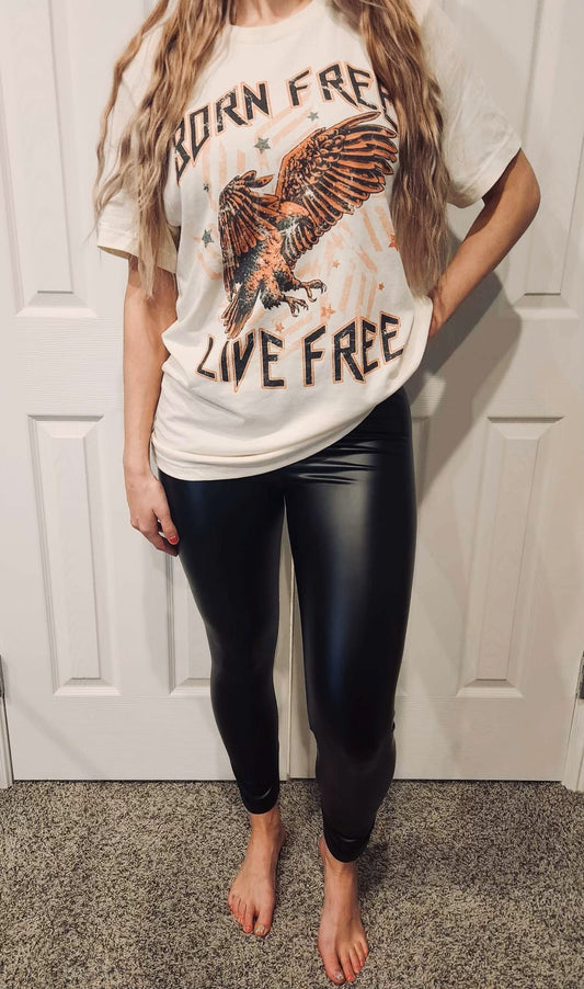 Ladies Retro Born Free Live Free Oversized Graphic Tee