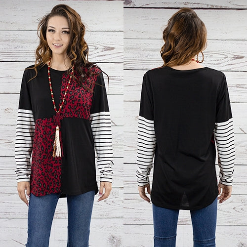 Ladies Color Block and Striped Long Sleeve Top