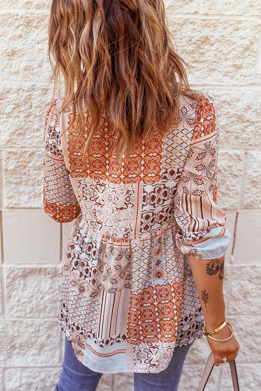 Ladies V-Neck Embroidered Boho Babydoll Top