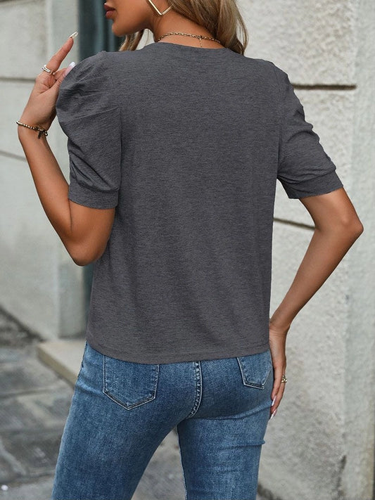 Ladies Casual Pullover Short-Sleeved Shirt-Dark Grey
