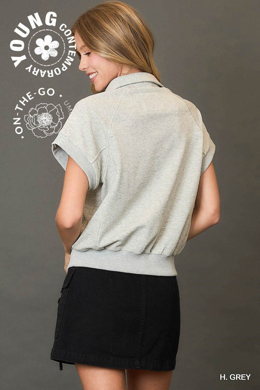 Ladies Snap Button Collared Knit Top by Umgee - Heather Grey