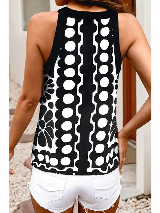 Ladies LDC Abstract Print Tank Top-Black