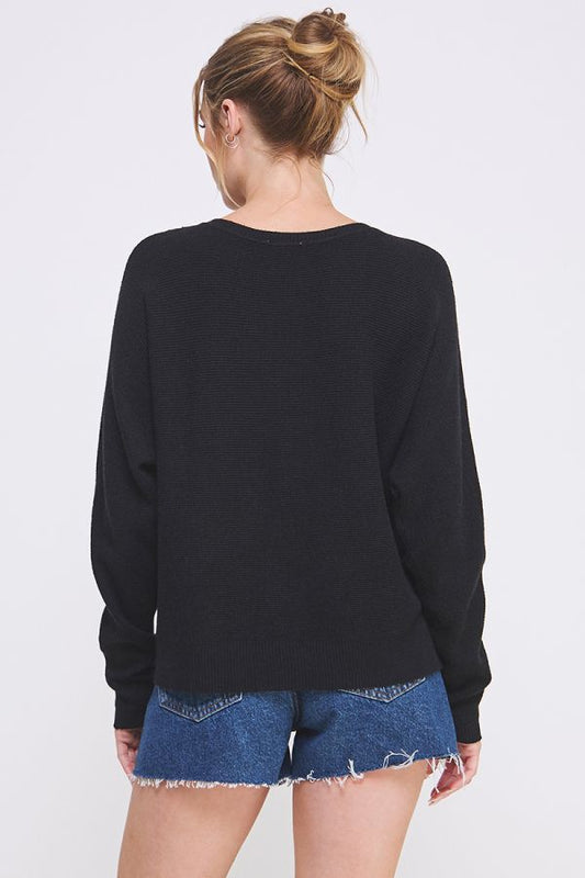 Ladies Soft Fine Gauge Mini Waffle Texture Dolman by Allie Rose - Black
