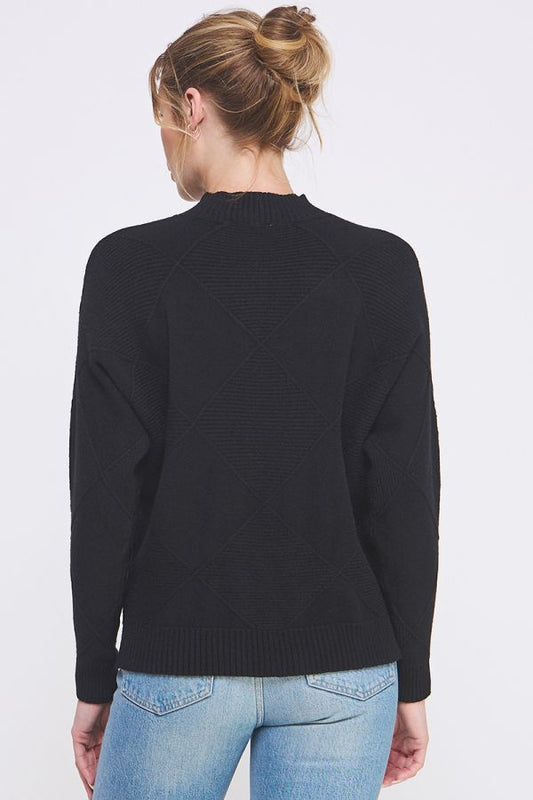 Ladies Soft Long Sleeve Dolman Fine Gauge Mock Neck Sweater in Diamond Pattern by Allie Rose-Black