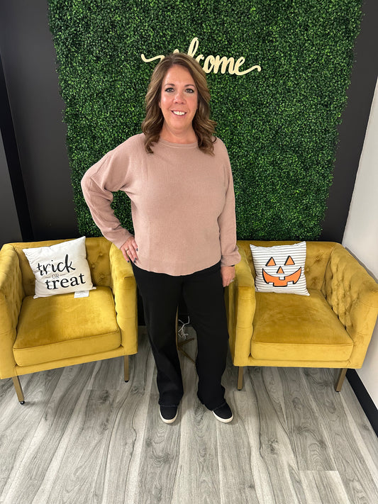 Ladies Soft Fine Gauge Mini Waffle Texture Dolman by Allie Rose - Dusty Rose