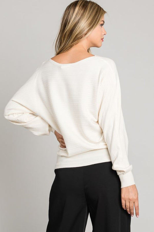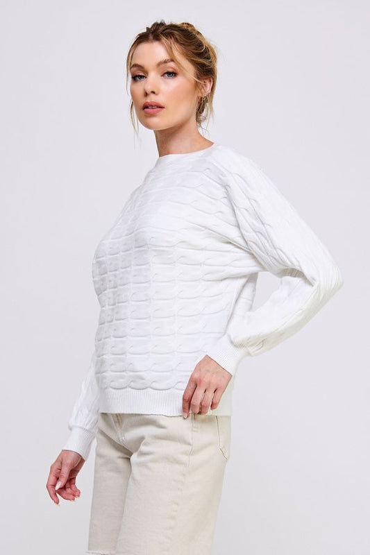 Ladies Soft Long Sleeve Dolman Fine Gauge in Horizontal Cable Knit Pattern by Allie Rose - Off White
