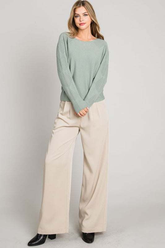 Ladies Soft Mixed Texture Sleeves Fine Gauge Dolman Pullover Sweater by Allie Rose