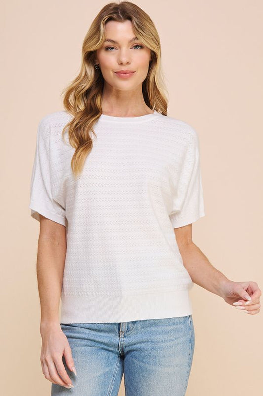 Ladies Soft Fine Gauge Pointelle Short Sleeve Top by Allie Rose - Off White
