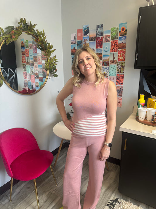 Ladies Contrast Stripe Knit Set by RIVIR - Blush Pink