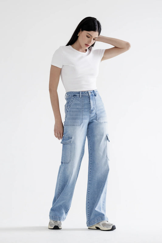 Ladies Mica Denim Super High Rise Wide Cargo Jeans - Lowes Blue