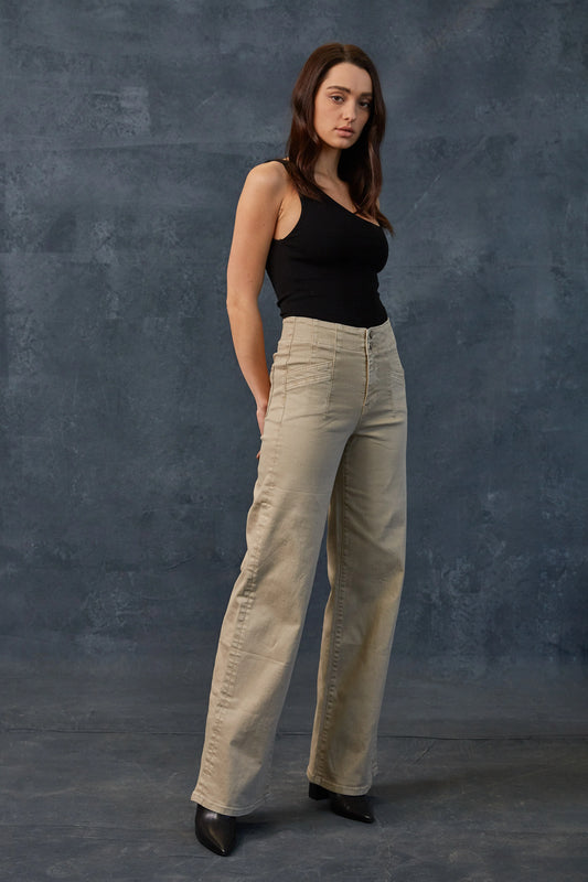 Ladies Mica Denim High-Rise Wide Leg Pants-Almond Milk
