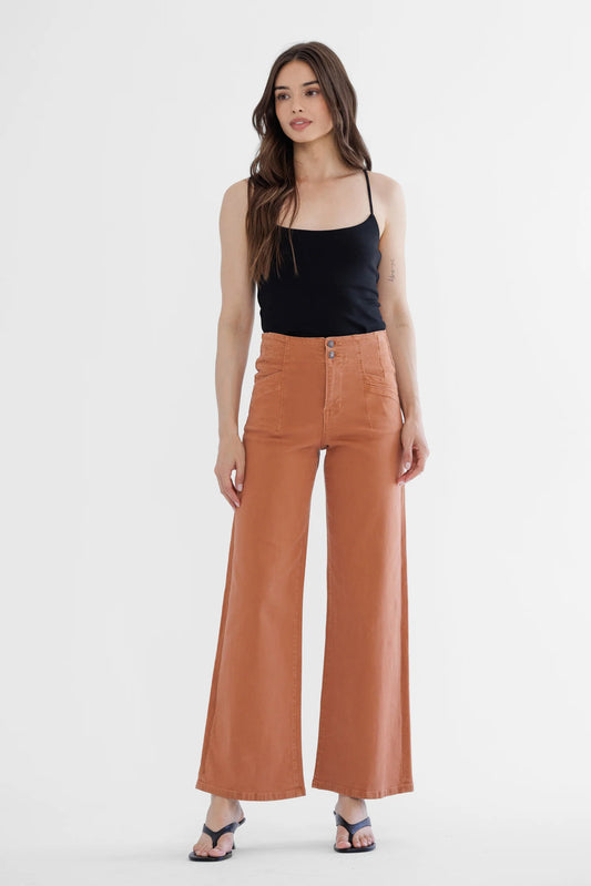 Ladies Mica Denim High-Rise Wide Leg Pants-Cinnamon