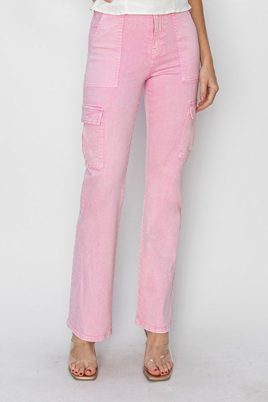 Ladies High Rise Straight Pants by Risen Jeans-Acid Pink