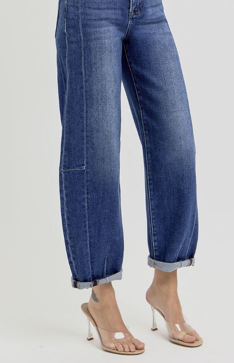 Ladies High Rise Barrel Jeans by Risen Jeans-Dark