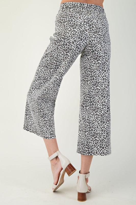 Ladies Animal Print 5-Button Front Washed Stretch Pants