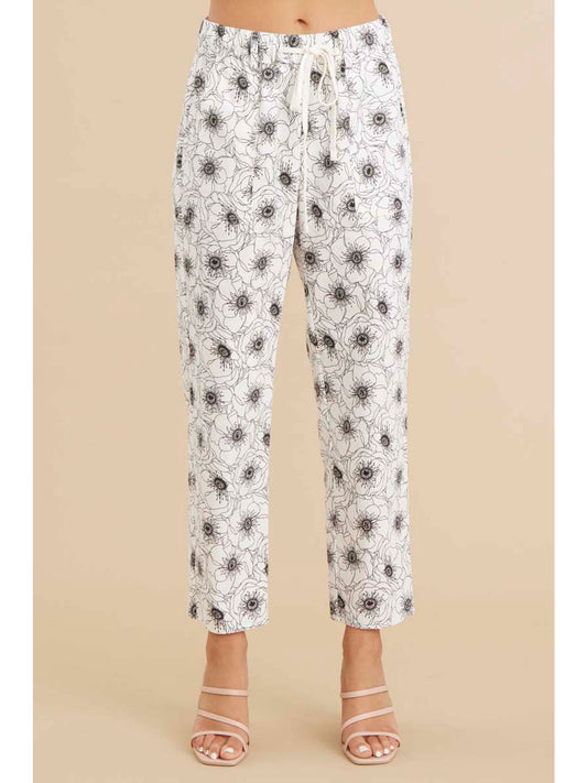 Ladies Jodifl Ankle Length Pants with Drawstring and Pockets - Black/White