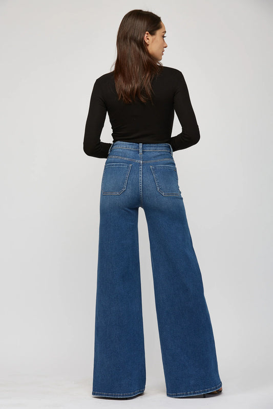 Ladies Mica Denim Front Pocket Wide Leg Jeans