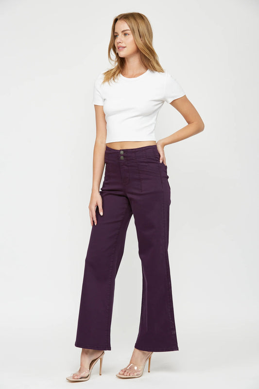 Ladies Mica Denim High-Rise Wide Leg Jeans - Plum