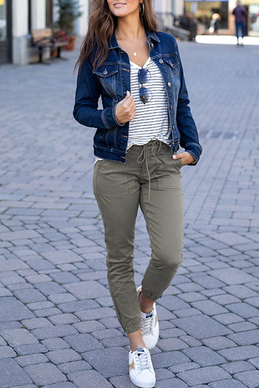 Ladies Green Slim Fit Pocketed Twill Jogger Pants