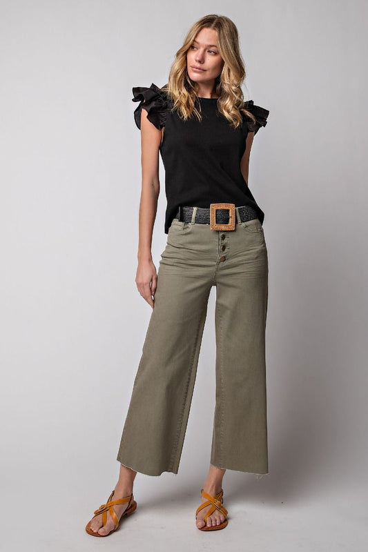 Ladies Easel Button Front Wide Leg Twill Trousers