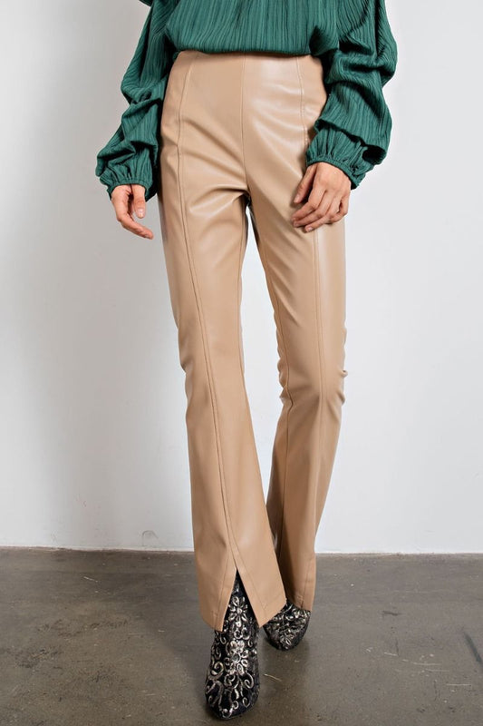 Ladies Bibi Rayon Spandex Waist Smocking Banded Pallazo Pants-Mocha