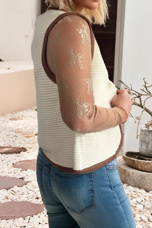 Ladies LDC Horizontal Ribbed Knit Contrast Trim Ties Front Sweater