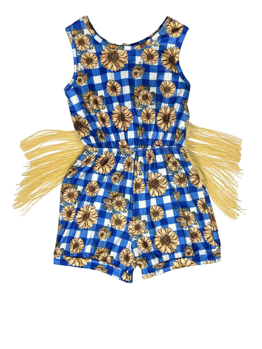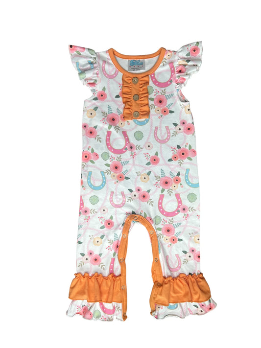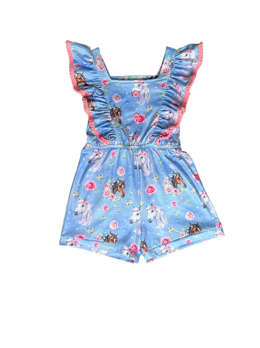 Girls Blue Floral Horse Shorts Romper by Shea Baby